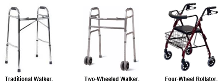 If lifting and maneuvering a standard walker is a struggle, you may want to opt for a two-wheeled walker, but if maintaining balance is difficult with a wheeled walker, you may want to opt for a standard model. Rollators can be easier to use than walkers because they are pushed like a cart rather than having to be lifted. Rollators are good for use both indoors and outdoors where surfaces may be uneven.